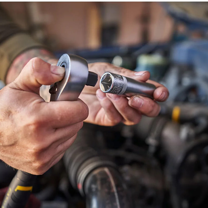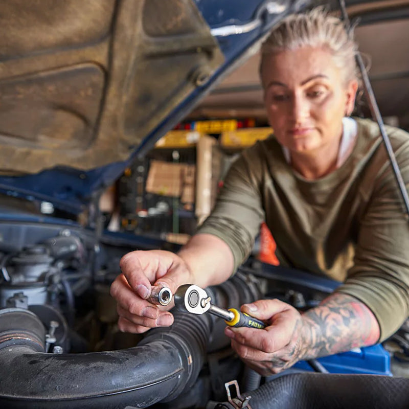 Le coffret de douilles ¼’’ + ½’’ FATMAX de STANLEY rassemble 81 pièces dans un format compact et résistant avec des attaches métalliques solides. Ce coffret est conçu pour offrir une efficacité optimale grâce à son cliquet 120 dents permettant un angle de reprise de seulement 3°, facilitant ainsi l’accès aux endroits les plus difficiles.