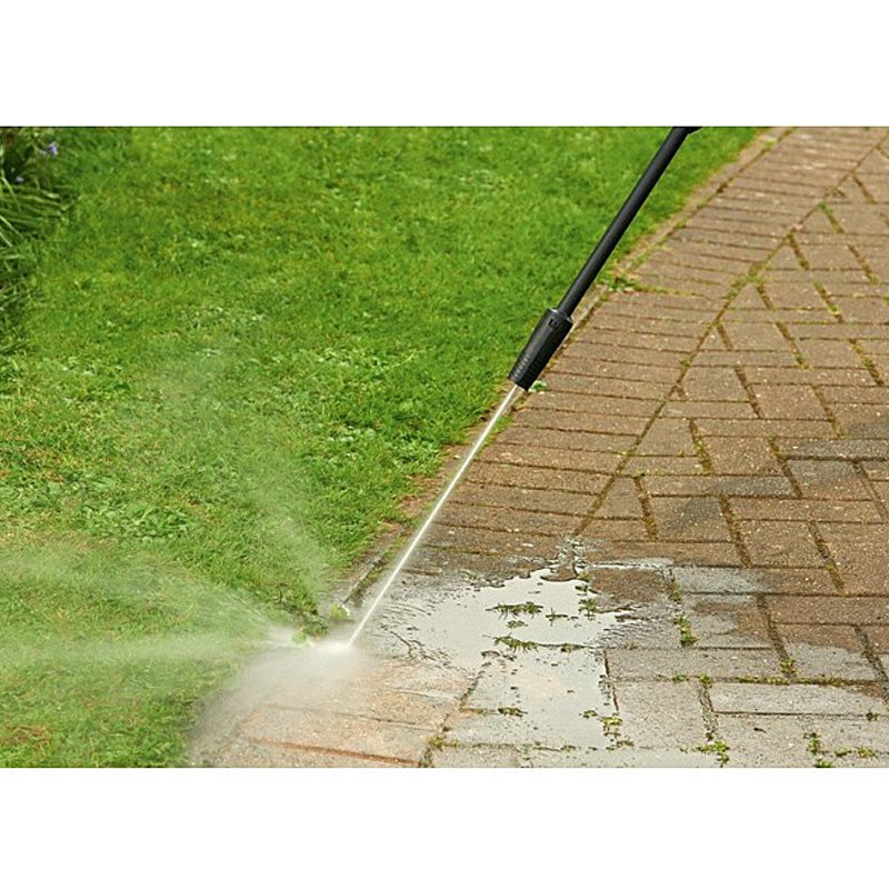 Sa polyvalence est renforcée par plusieurs buses adaptées, notamment une buse à jet plat réglable, une buse à jet rotatif, et une buse à détergent haute pression. Ce modèle facilite l'utilisation avec son enrouleur de flexible intégré, ainsi que des raccords rapides pour une installation et un rangement sans effort.