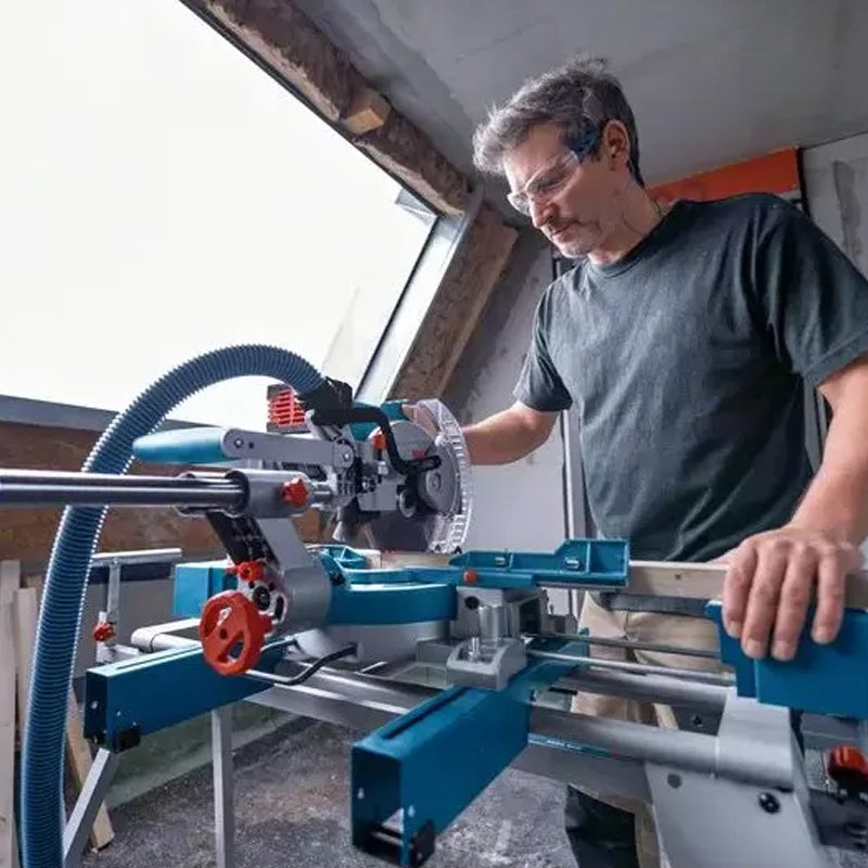 Cette scie est idéale pour les coupes transversales, d’onglet et biaises dans le bois, le PVC et l’aluminium. Sa double inclinaison blocable à 47° permet une grande flexibilité d'utilisation.